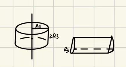 其实就是切割圆角的问题,我们将圆柱周围一圈展开的时候,是不能直接用右边那个半圆柱的体积去算的,因为这个半圆柱是压缩过的,我们要考虑内半径和外半径长度不同,也就是说周围这一圈是不能被展开的,要么用积分算,要么就展开后再把球体的体积加上。