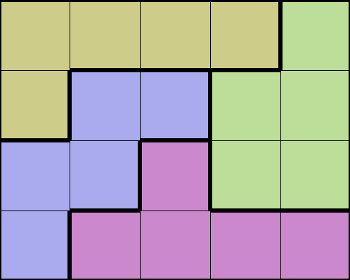 | vector <string> two_ten = {"LLLLNNNPPP","LIIIIINNPP"}; vector <string> two_fif = {"LIIIIINNYNNNPPP","LLLLNNNYYYYNNPP"}; vector <string> three_five = {"TLLLL","TTTYL","TYYYY"}; vector <string> four_five = {"LLLLP","LWWPP","WWYPP","WYYYY"}; vector <string> five_five = {"PPPFF","PPFFL","UUXFL","UXXXL","UUXLL"}; void solve () { int n = read (),m = read (),fl = 0; if (n * m % 5 != 0) {puts ("no");return;} if (n > m) fl ^= 1,swap (n,m); if (n > 2 && m % 5 != 0) fl ^= 1,swap (n,m); vector <vector <char>> ans (n + 1,vector <char> (m + 1)); auto fill = [&] (int n,int st,vector <string> &chr,int bias = 0) -> void { for (int i = 1;i <= n;++i) { int pos = 0; for (auto v : chr[i - 1]) ans[i + bias][st + pos] = v,++pos; } }; if (n == 1) { if (m != 5) {puts ("no");return;} for (int i = 1;i <= 5;++i) ans[1][i] = 'I'; } else if (n == 2) { if (m == 5) {puts ("no");return;} int dx = 0,dy = 0; for (int i = 0;i <= m;++i) if (10 * i <= m && (m - 10 * i) % 15 == 0) {dx = i;dy = (m - 10 * i) / 15;break;} int pos = 1; while (dx--) fill (2,pos,two_ten),pos += 10; while (dy--) fill (2,pos,two_fif),pos += 15; } else { for (int i = 1;i <= m;i += 5) fill (3,i,three_five); int delta = (3 + n % 3); if (delta == 3) delta = 0; for (int i = 4;i <= n - delta;i += 3) { for (int o = 0;o < 3;++o) { ans[i + o] = ans[i + o - 3]; reverse (ans[i + o].begin () + 1,ans[i + o].end ()); } } for (int i = 1;delta && i <= m;i += 5) fill (3 + n % 3,i,n % 3 == 0 ? three_five : (n % 3 == 1 ? four_five : five_five),n - (3 + n % 3)); } puts ("yes"); if (!fl) { for (int i = 1;i <= n;++i) { for (int j = 1;j <= m;++j) printf ("%c",ans[i][j]); puts (""); } } else { for (int j = 1;j <= m;++j) { for (int i = 1;i <= n;++i) printf ("%c",ans[i][j]); puts (""); } } }