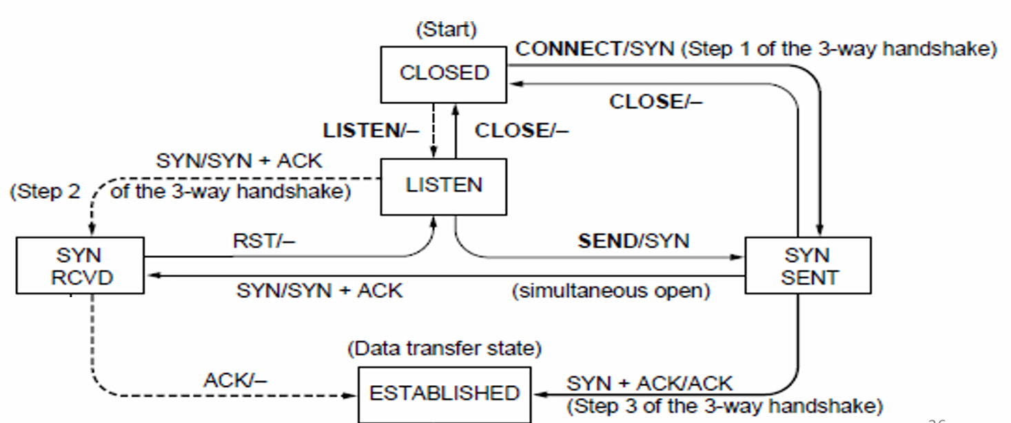 0 1 2 3 0 1 2 3 4 5 6 7 8 9 0 1 2 3 4 5 6 7 8 9 0 1 2 3 4 5 6 7 8 9 0 1 +-+-+-+-+-+-+-+-+-+-+-+-+-+-+-+-+-+-+-+-+-+-+-+-+-+-+-+-+-+-+-+-+ | Source Port | Destination Port | ← Identifies sockets +-+-+-+-+-+-+-+-+-+-+-+-+-+-+-+-+-+-+-+-+-+-+-+-+-+-+-+-+-+-+-+-+ | Sequence Number (32) | ← Byte-based sequencing +-+-+-+-+-+-+-+-+-+-+-+-+-+-+-+-+-+-+-+-+-+-+-+-+-+-+-+-+-+-+-+-+ | Acknowledgment Number (32) | ← Next expected byte +-+-+-+-+-+-+-+-+-+-+-+-+-+-+-+-+-+-+-+-+-+-+-+-+-+-+-+-+-+-+-+-+ | Data Offset | 0 | Flags | Window Size (16) | ← Control & flow control +-+-+-+-+-+-+-+-+-+-+-+-+-+-+-+-+-+-+-+-+-+-+-+-+-+-+-+-+-+-+-+-+ | Checksum (16) | Urgent Pointer (16) | ← Integrity & urgent data +-+-+-+-+-+-+-+-+-+-+-+-+-+-+-+-+-+-+-+-+-+-+-+-+-+-+-+-+-+-+-+-+ | Options (variable) | +-+-+-+-+-+-+-+-+-+-+-+-+-+-+-+-+-+-+-+-+-+-+-+-+-+-+-+-+-+-+-+-+ | Data | +-+-+-+-+-+-+-+-+-+-+-+-+-+-+-+-+-+-+-+-+-+-+-+-+-+-+-+-+-+-+-+-+-