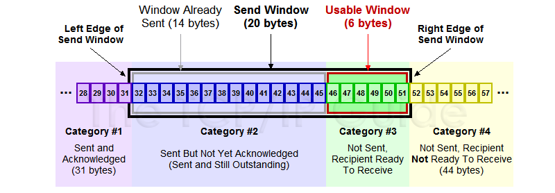 bit counter wraps around at . Let be Last Acknowledgement Received, be Last Acknowledgement Sent.